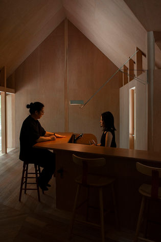 It also features a rotating structure that follows the bent geometry of the counter, allowing the position of the light to shift in response to how the space is used.